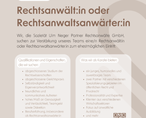 Mit mehr als 50 Jahren Erfahrung im Team, mit juristischer Kompetenz und Expertise, mit gutem Gefühl und gutem Gewissen. Willkommen bei ulm neger partner!